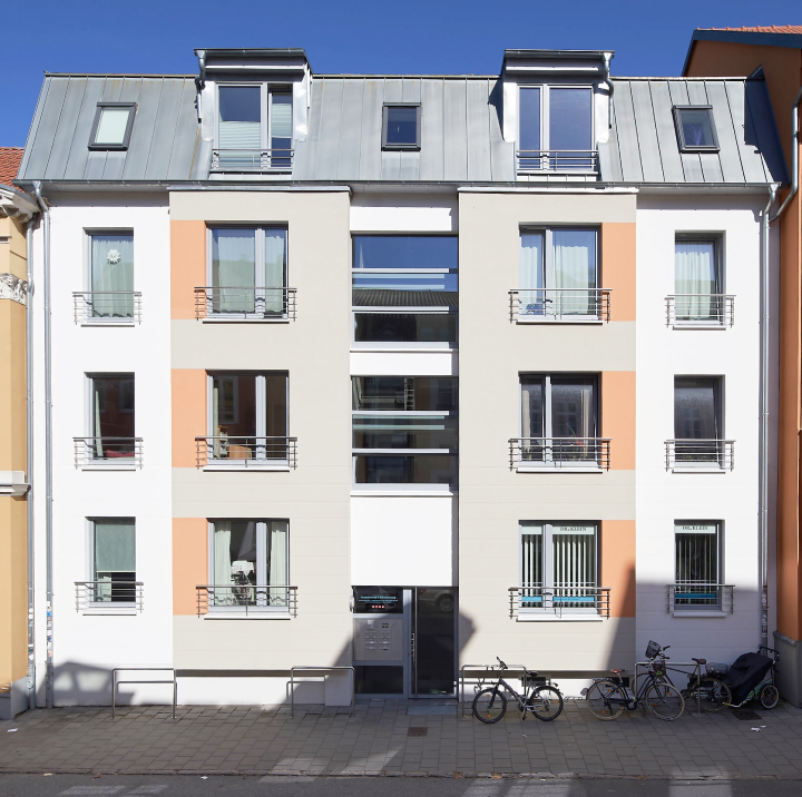 Energetische Sanierung der Fassade und des Daches, Photovoltaik-Anlage, Überarbeitung des Treppenhauses und Schaffung einer Wohnung im Dachgeschoss